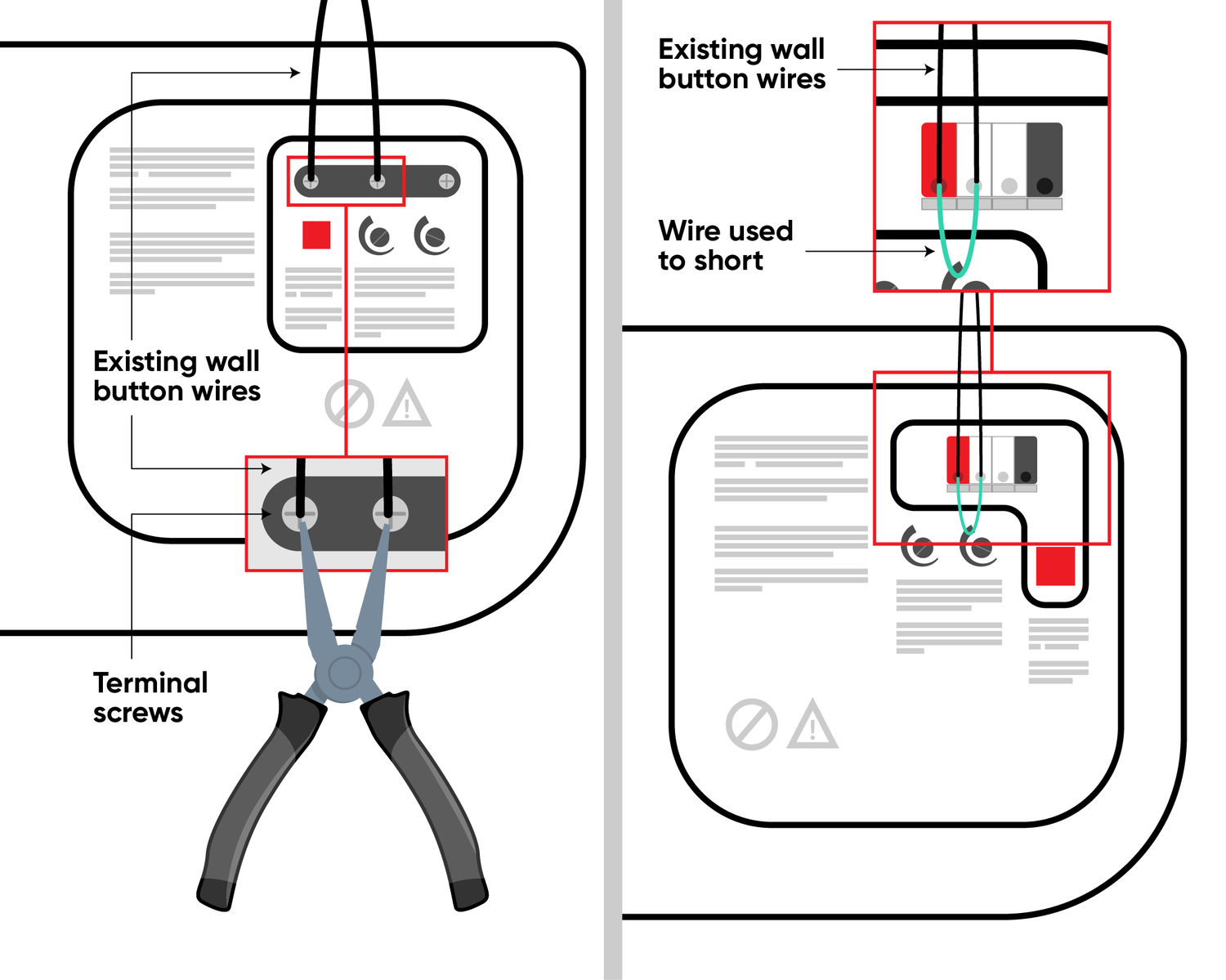Use a pair of needle nose pliers to short the wall button terminals. If the garage door opens or closes, Wyze Garage Door Controller is fully compatible.