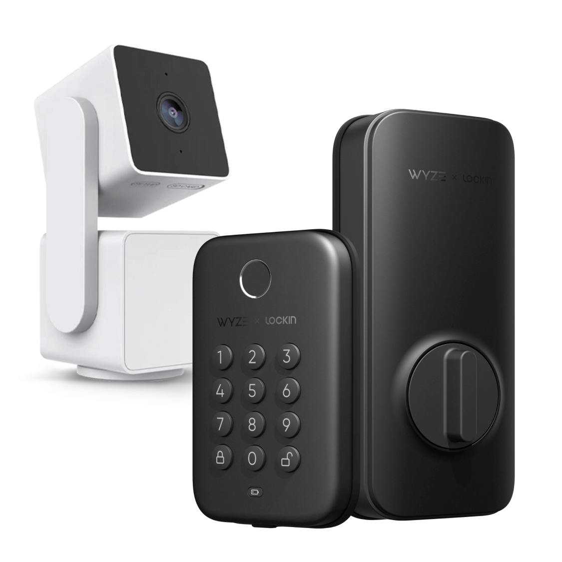 Make losing your keys a thing of the past with the Secure Entry Essentials Bundle! Unlock your door instantly with Wyze Lock Bolt’s lightning-fast fingerprint reader and sleek backlit keypad—plus, it auto-locks if you forget. Keep an eye on things inside and out with the Wyze Cam Pan v3, a weather-resistant 360° pan and 180° tilt camera that captures every angle. Stay secure and in control with this playful, smart setup that makes home safety effortless and fun.