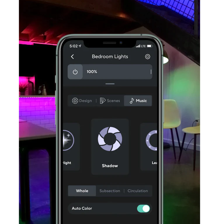 Create and save your own custom, multicolor lighting scenes in the Wyze app. Quickly change between dozens of saved and preset scenes with a tap.