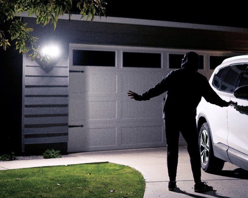 Turn night into day with two 2800 lumen, adjustable and motion-activated LED lights that illuminate your path and keep intruders at bay.