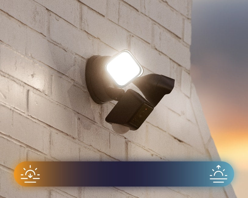 When motion is detected by the 270° PIR sensor, the floodlight turns on for a select period of time and then turns off. This feature is enabled by default but can be disabled in the floodlight's settings.