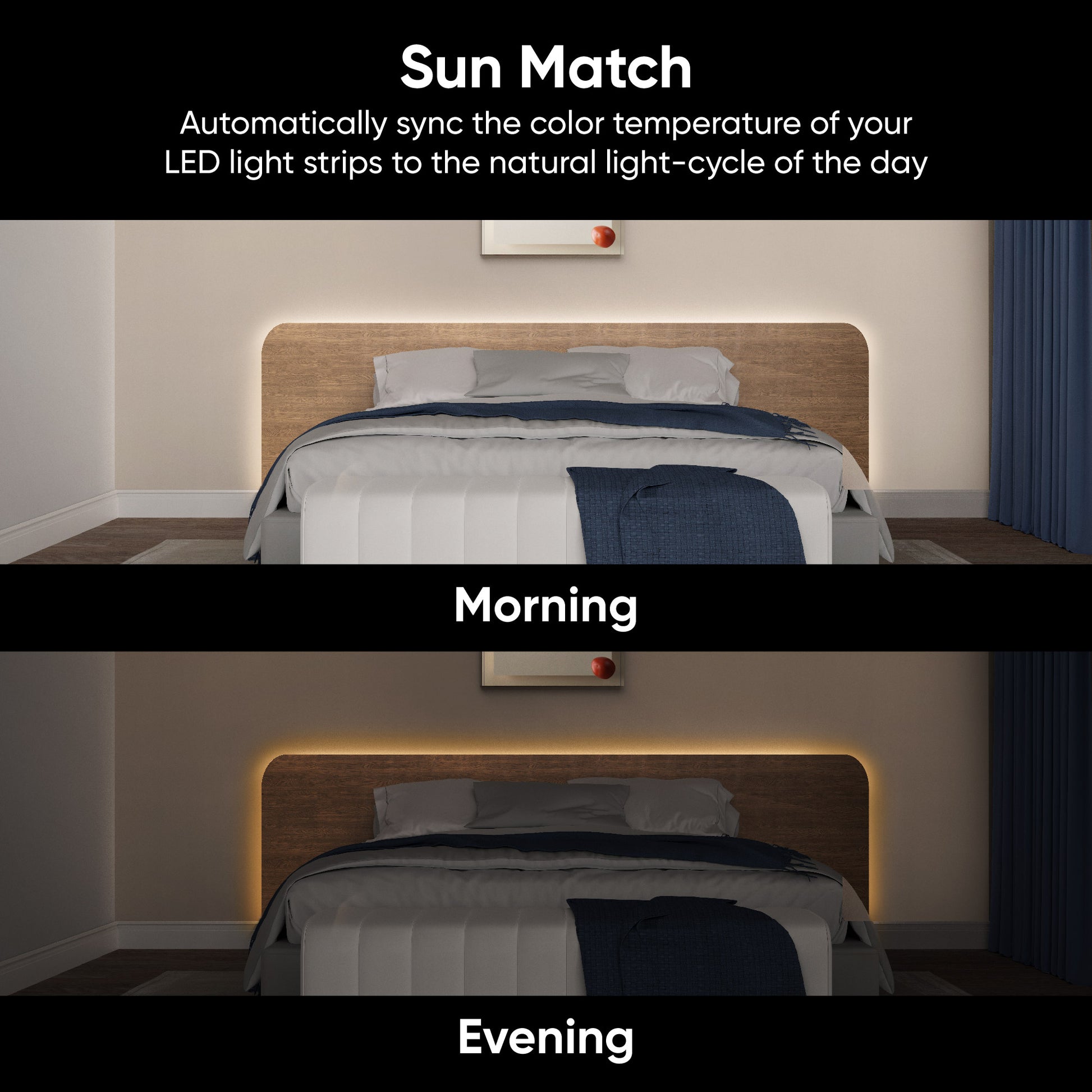 Automatically sync the color temperature of your LED light strips to the natural light-cycle of the day, so you can wake, work, or wind down the way nature intended
