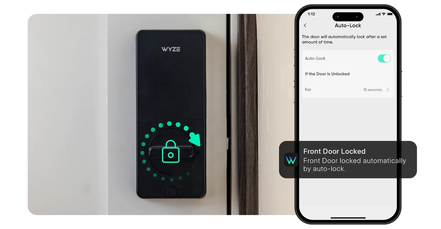 A: Wyze Lock Bolt v2 includes an auto-lock timer. After you set a timer and unlock the door, the lock begins counting down. When the countdown reaches zero, the bolt extends and the door locks automatically. The lock does not detect whether the door is closed, so please ensure the door is fully shut before the time is up.