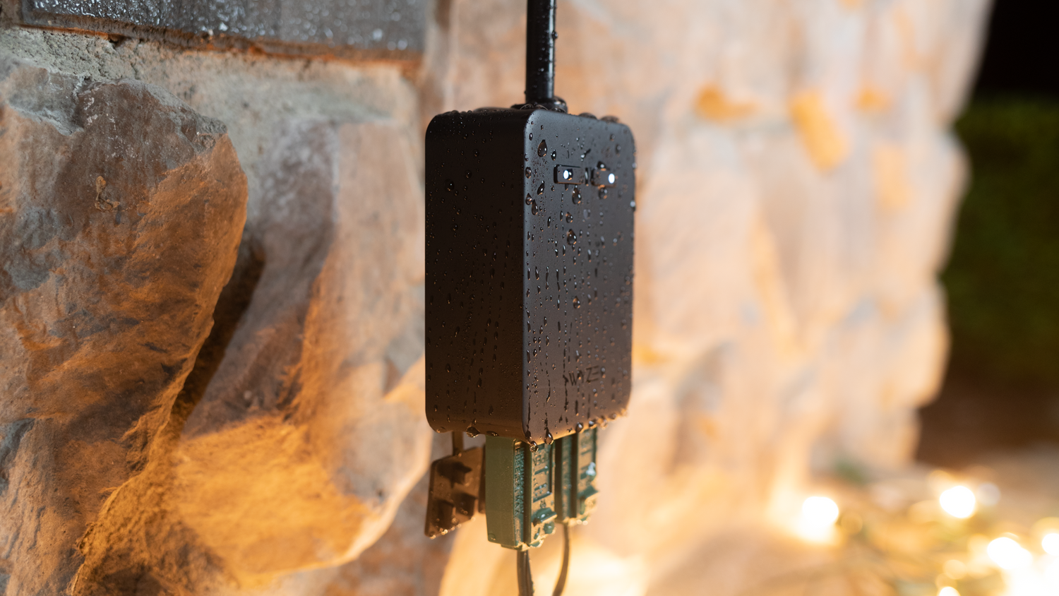 Wyze Plug Outdoor has a built-in photocell sensor that measures ambient light around the device. It is important to follow the in-app instructions and orient the device so it faces away from the wall so the sensor is exposed to the surrounding environment.