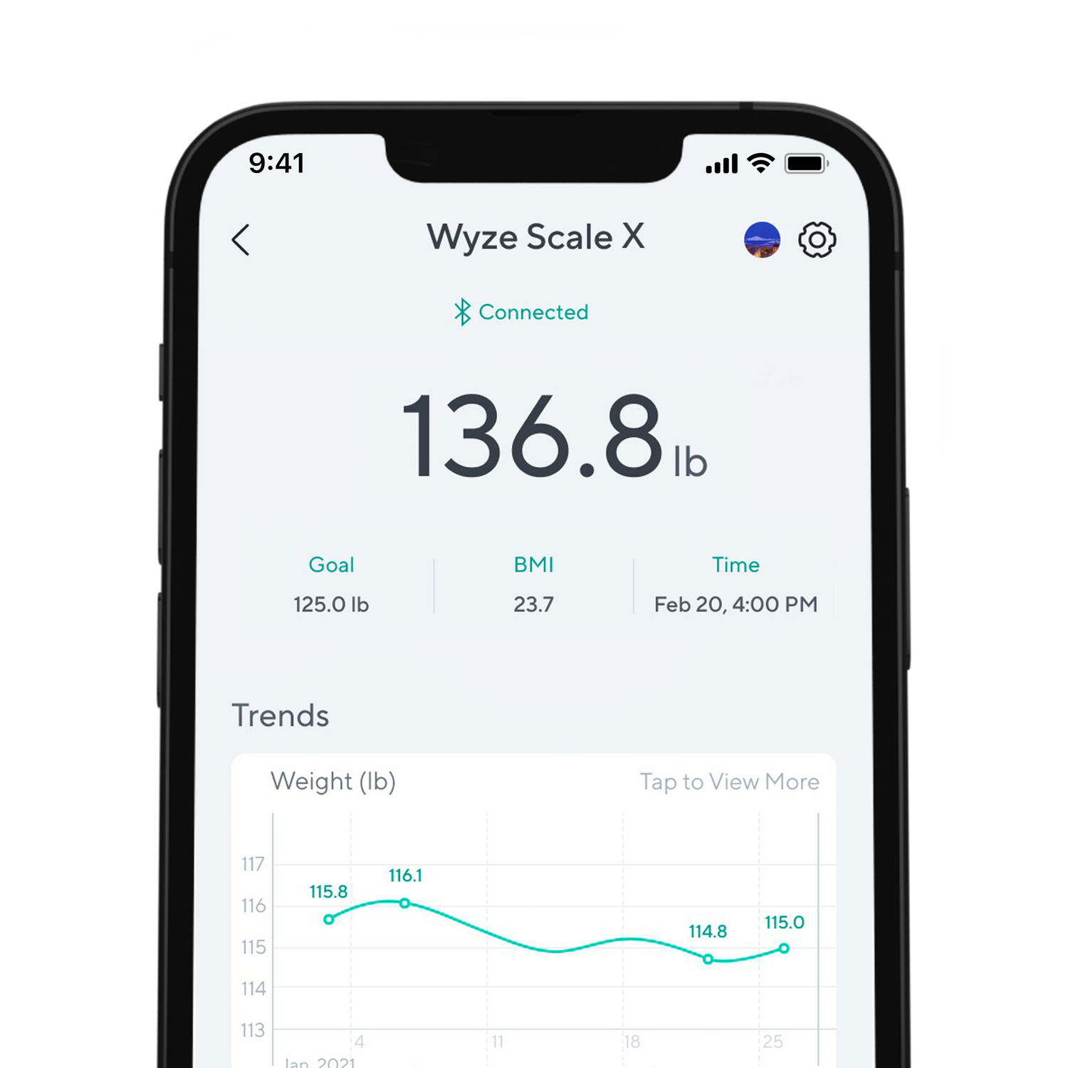 Immediately see your goal and trend line when you open the Wyze Scale X app.